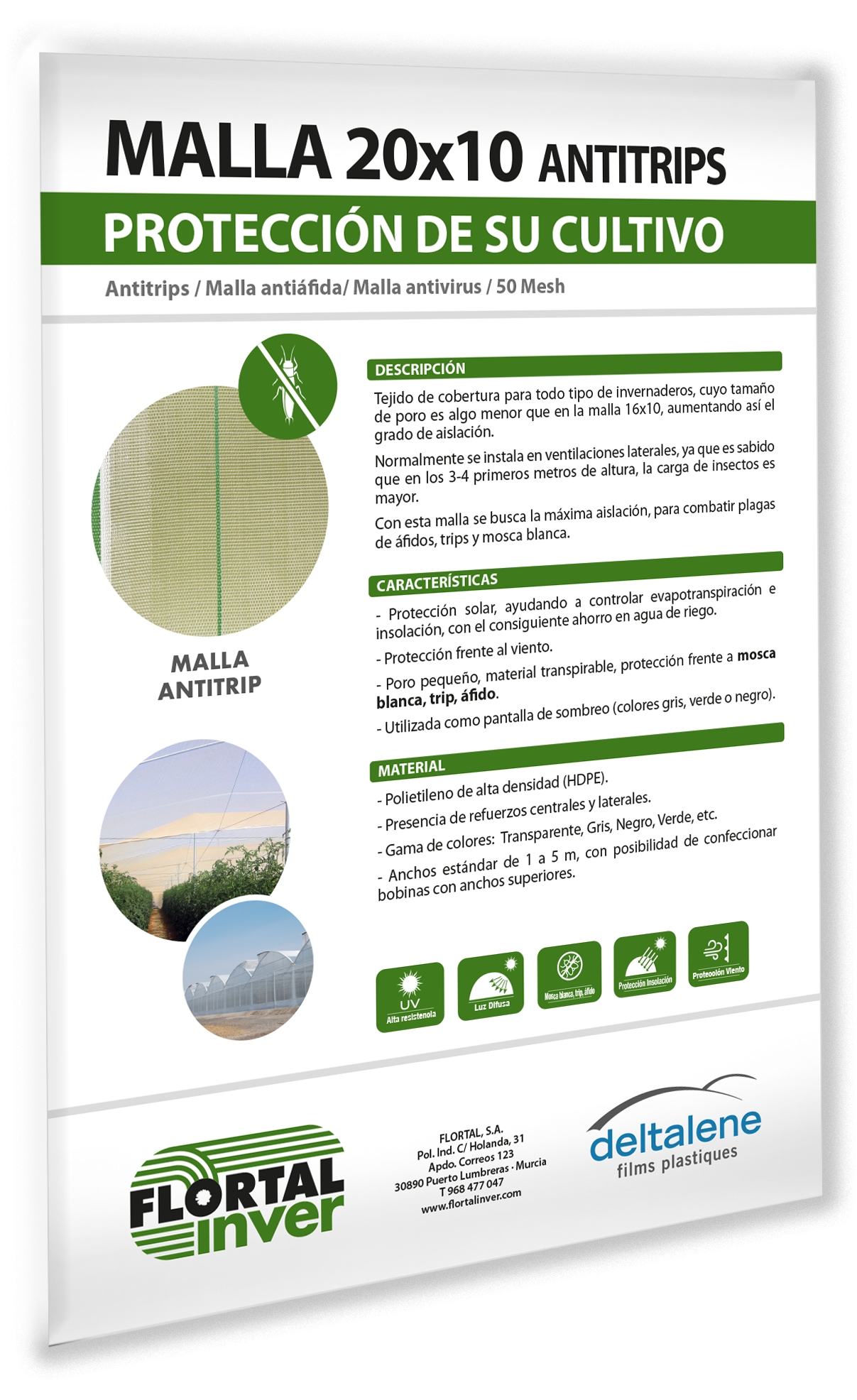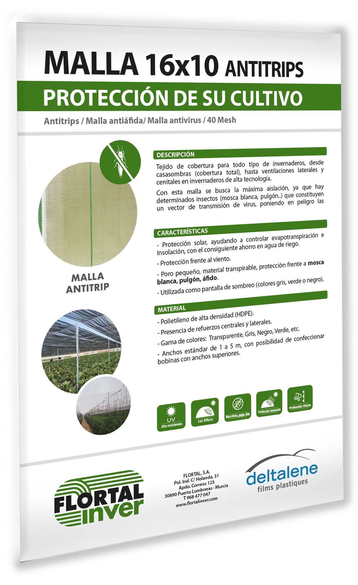 - Poro pequeño, material transpirable, protección frente a pulgones, trips, mosca blanca y minador.