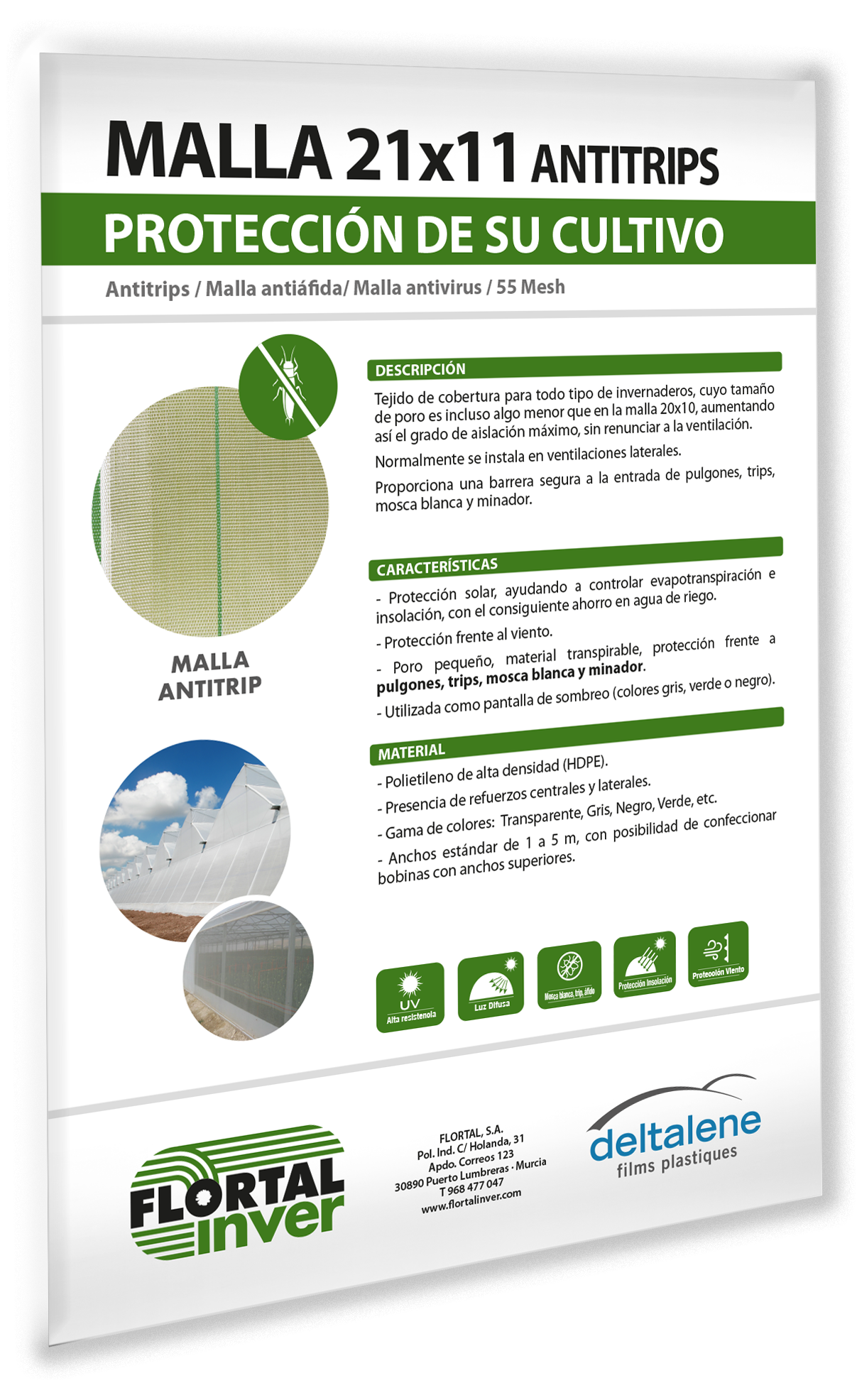 - Poro pequeño, material transpirable, protección frente a pulgones, trips, mosca blanca y minador.